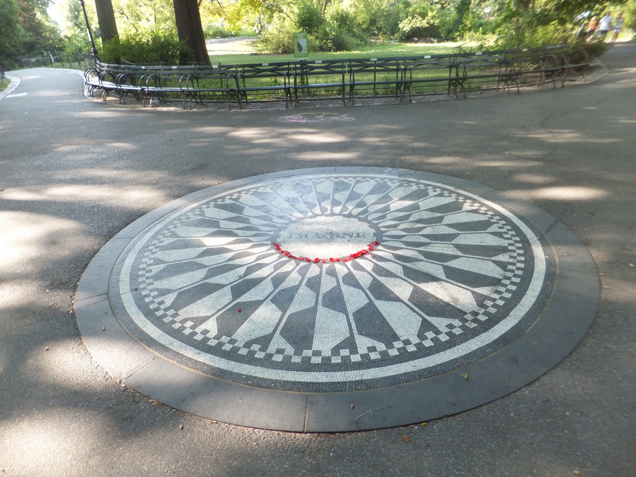 セントラルパークの南西側,路上に作られた記念モニュメント。