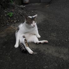 駅の通路にも、道端にもあちこちに猫かくつろいでいます。