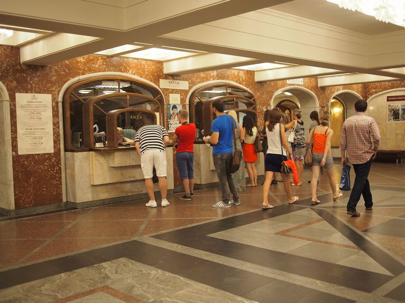 入り口から入場すると階段があるので地下へ下ります。そこがチケット売り場、クローク、売店になっています。売店ではガイドブックも販売しています。日本語版もありました。(350ルーブル) 売店は何カ所かあります。