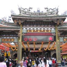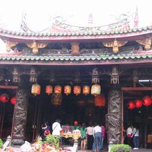 鹿港の大通り、中山路を進むあります。龍山寺に比べ華やかな雰囲気で、入り口付近には屋台や商店が並び、日本のお寺の縁日のようで活気があります。航海の安全を守る神の媽祖が祀られています。訪れた時には遠足か、修学旅行のような雰囲気の若者たちがいました。