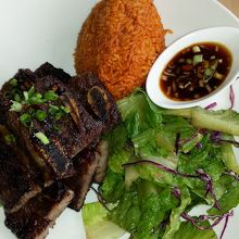 赤いバスの9番イパオ公園前のバス停から数十メートルです。今回は予約なしで行きました。ランチは11:00オープンなので20分前に行きました。1番乗りでした。11:30には並んでいました。諦める人もいました。前回はビッグフェラートリオにしましたが、チキンのBBQは日本のスーパーの惣菜の味に似ていてテンションが下がったので今回はショートリブのBBQにしました。大変美味しかったです。あとシーザーサラダ頼みました。行く時間も選んだメニューも正解でした。