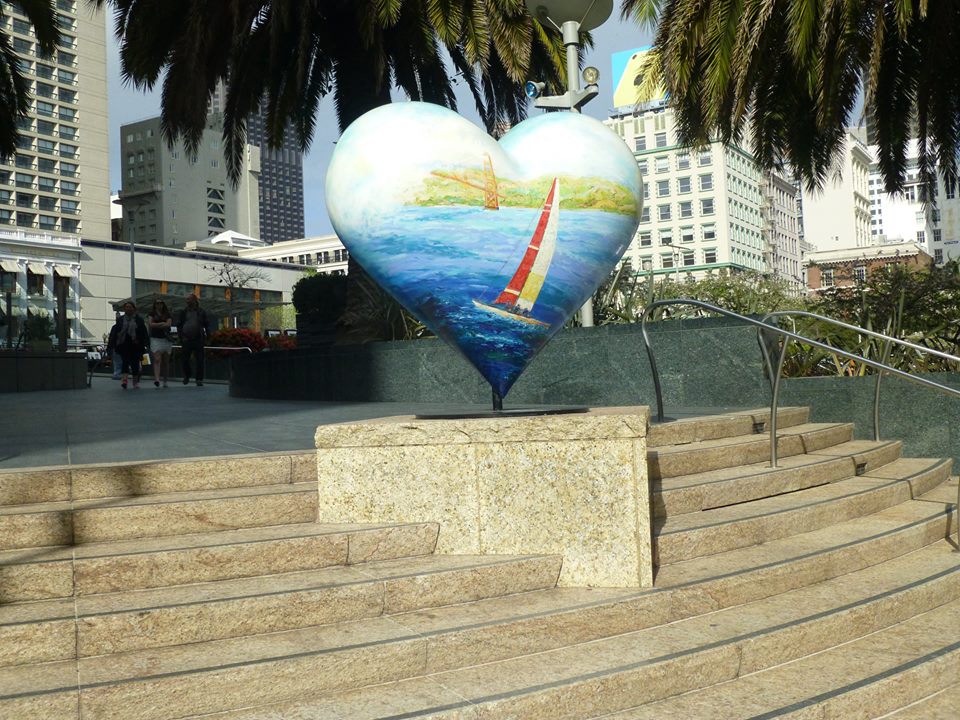 サンフランシスコのベタな名所です。(笑)いたって普通の憩いの広場だと思います。4つほど、ハートのオブジェがあり観光客は皆、そのオブジェのところで記念撮影をしていました。午後にはバクパイプを使って演奏している人もいます。観光客も多いですが、お金を要求する浮浪者も多いです。