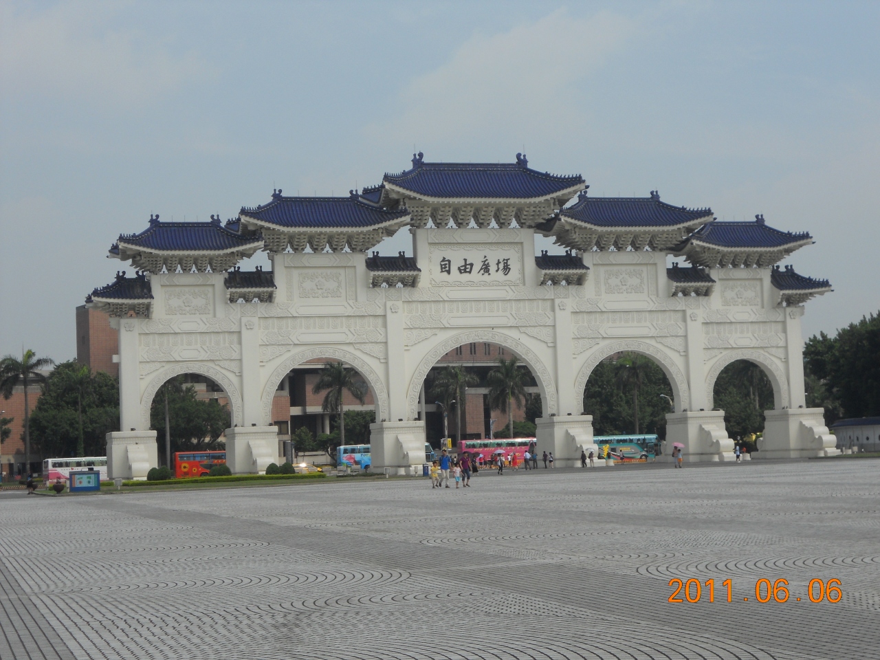 ここは中正紀念堂内の大きな門です。中正紀念堂内の大きな規模と大変よく似合う大きな門です。白色の建物の外観はTAIPEI国民の純粋さと忠誠心を示しているとします。周りに広場があるので家族と一緒に旅行を来ても良い場所です。