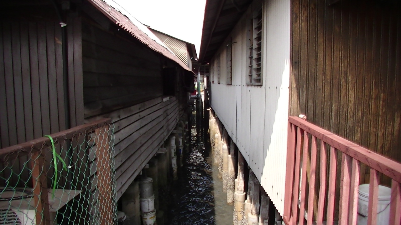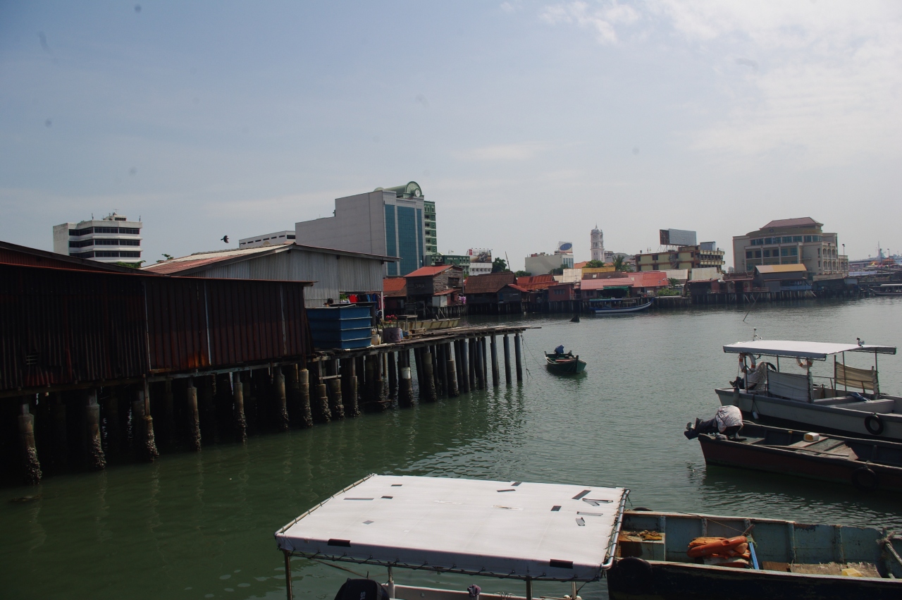 ジョージタウンの東海岸沿いに今でも残る同姓の周一族が暮らす水上集落を地元の人はシュウジェッティーと呼ぶそうです。すでに取り壊されたり棟もあり、今残っている棟々も近々取り壊される予定だったそうですが、2008年に世界遺産に登録されたことにより残留がきまりました。入口には寺がありました。お寺の脇を進むと、もう橋です。橋の両側には住宅が並んでいます。先端まで歩いても5分あれば着きます。この辺は一族で住む水上集落が密集しており一度はおと連れてみるのもいいかも。