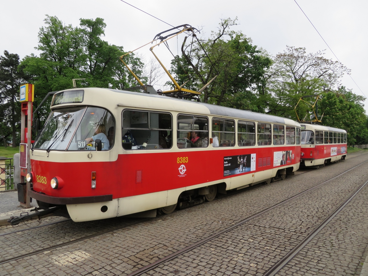 プラハの街中を縦横斜め、至る所に走っている路面電車です。
