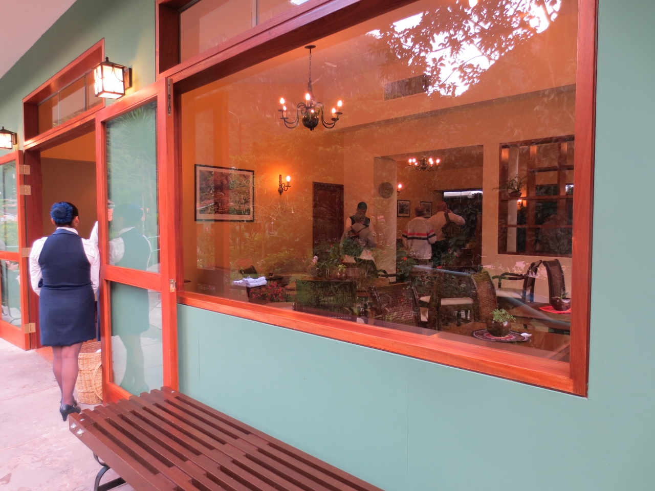 マチュピチュへの鉄道はクラスがあって、1等席ならば、待合室の利用から違います。ホームへ出るにも鉄道職員の警備があるので、簡単に行き来できるものではありませんでした。意外にしっかりした警備です。乗り込む際にはパスポートの提示も必要です。
