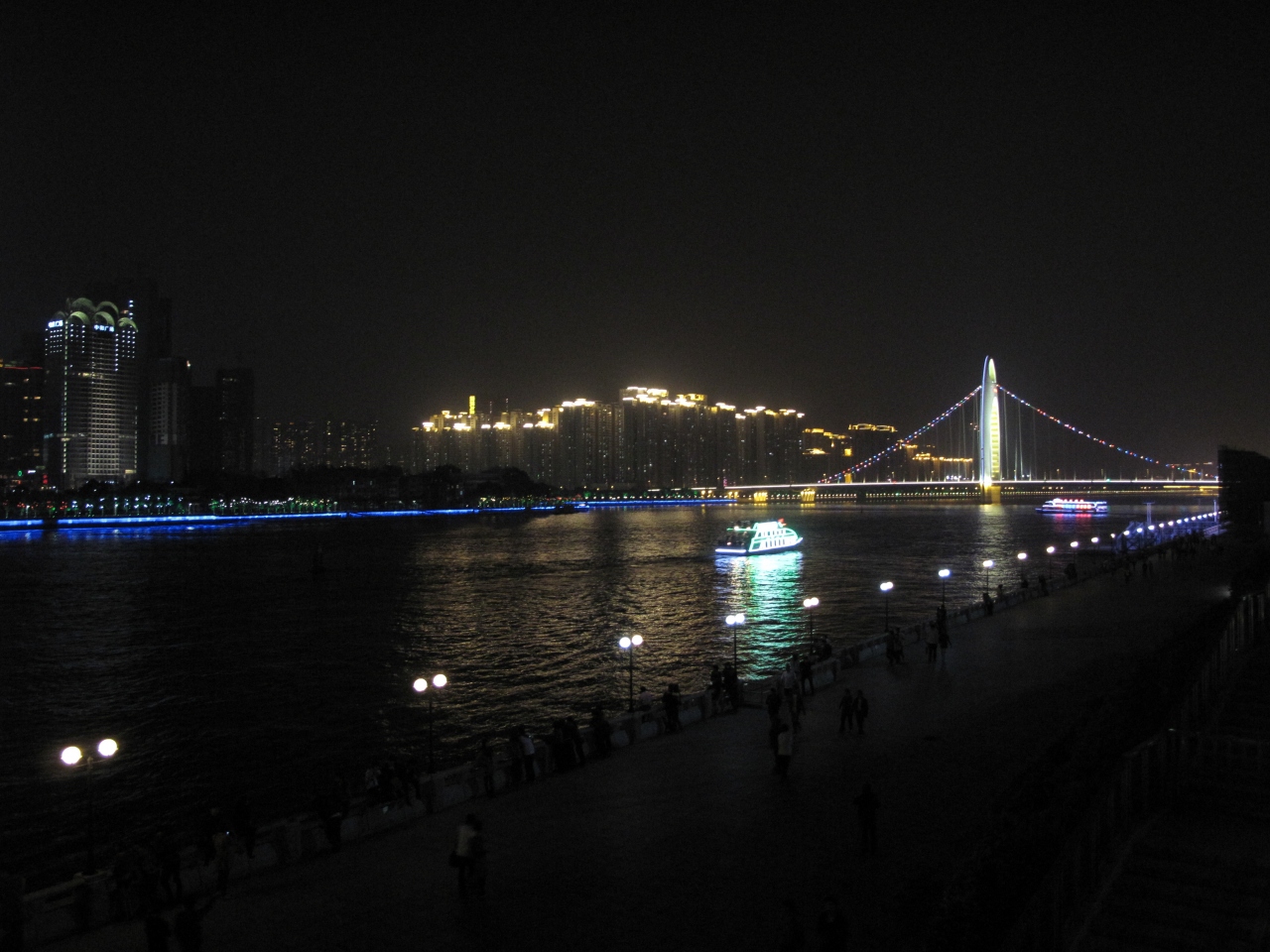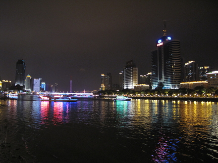 珠江の畔を散歩すれば、ライトアップされた美しい川辺を楽しむことができます。