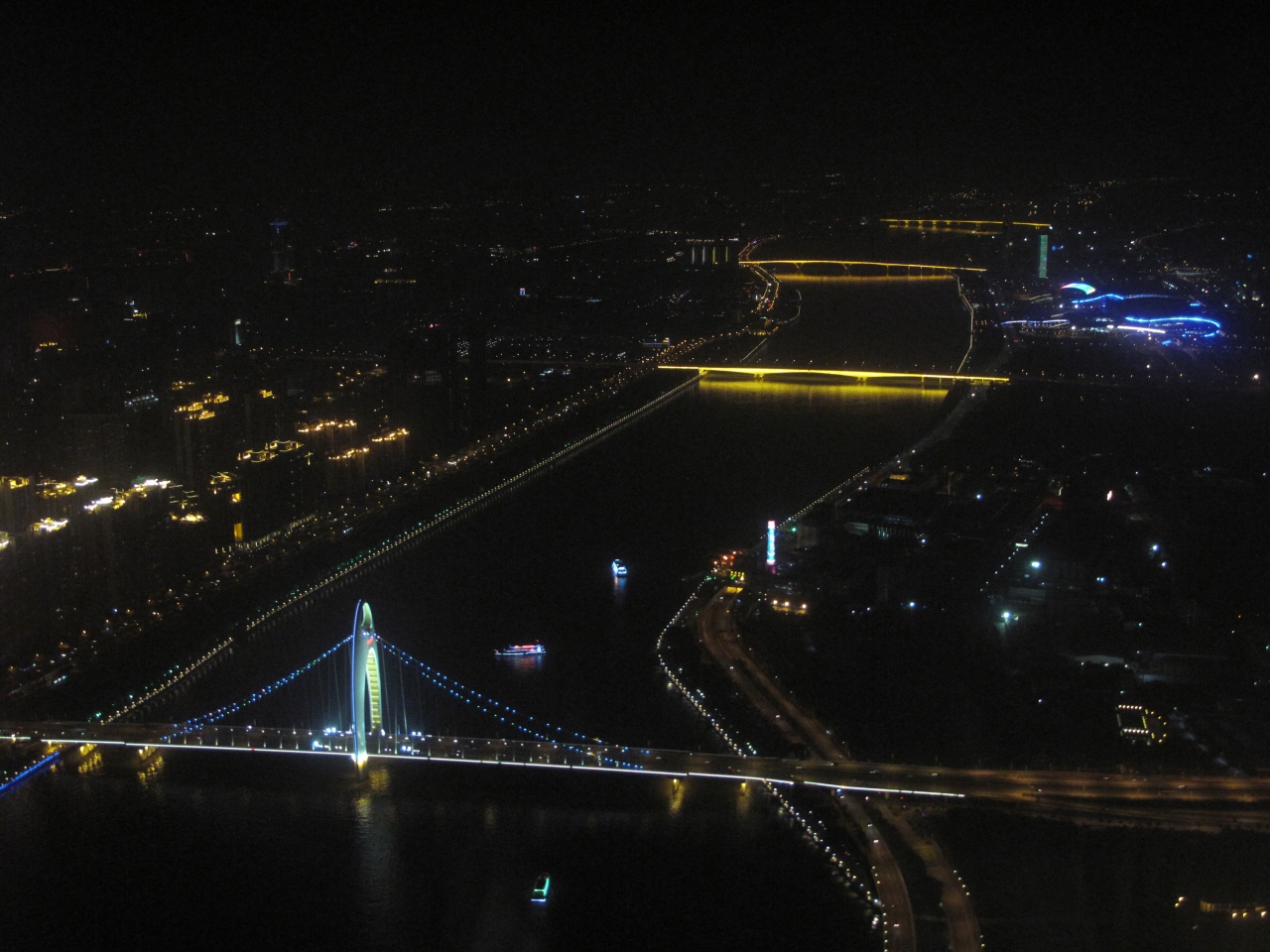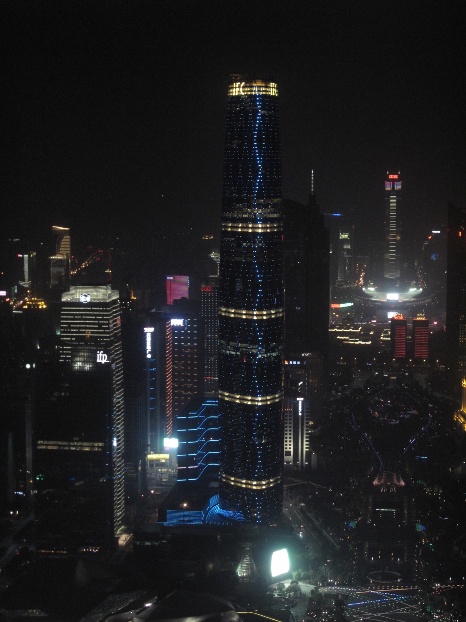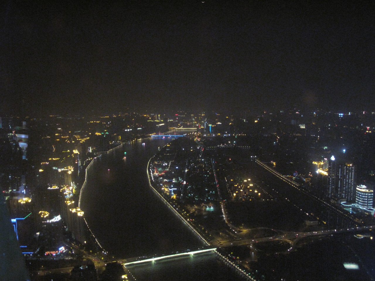タワーからは、ビル群の夜景や珠江の落ち着いた輝き、のんびりと夜の広州を楽しむことができます。