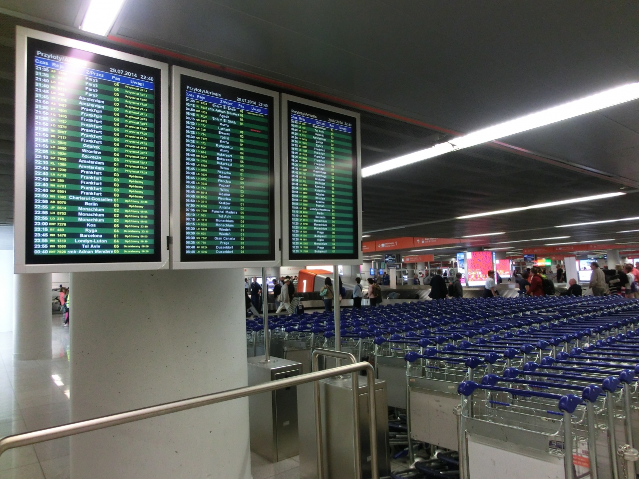 2012年に開催されたサッカーのヨーロッパ選手権を機に改装され、また市内への直通鉄道が乗り入れたので便利になりました。荷物の引き取り(baggage reclaim)も判りやすい案内板と無料カートが用意されています。