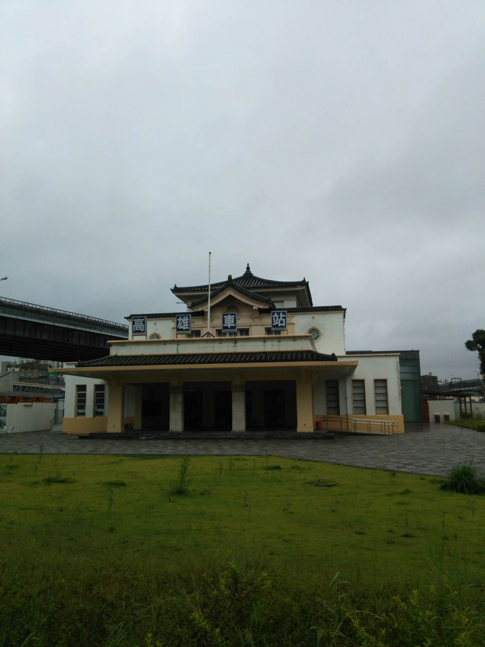 帝冠様式のレトロな建物は、以前の高雄駅から100メートル近く移動させていったん保存され、今後改修工事を終えたあとも利用することななっているそうです。入り口には囲いがありましたが、外観は自由に見れます。
