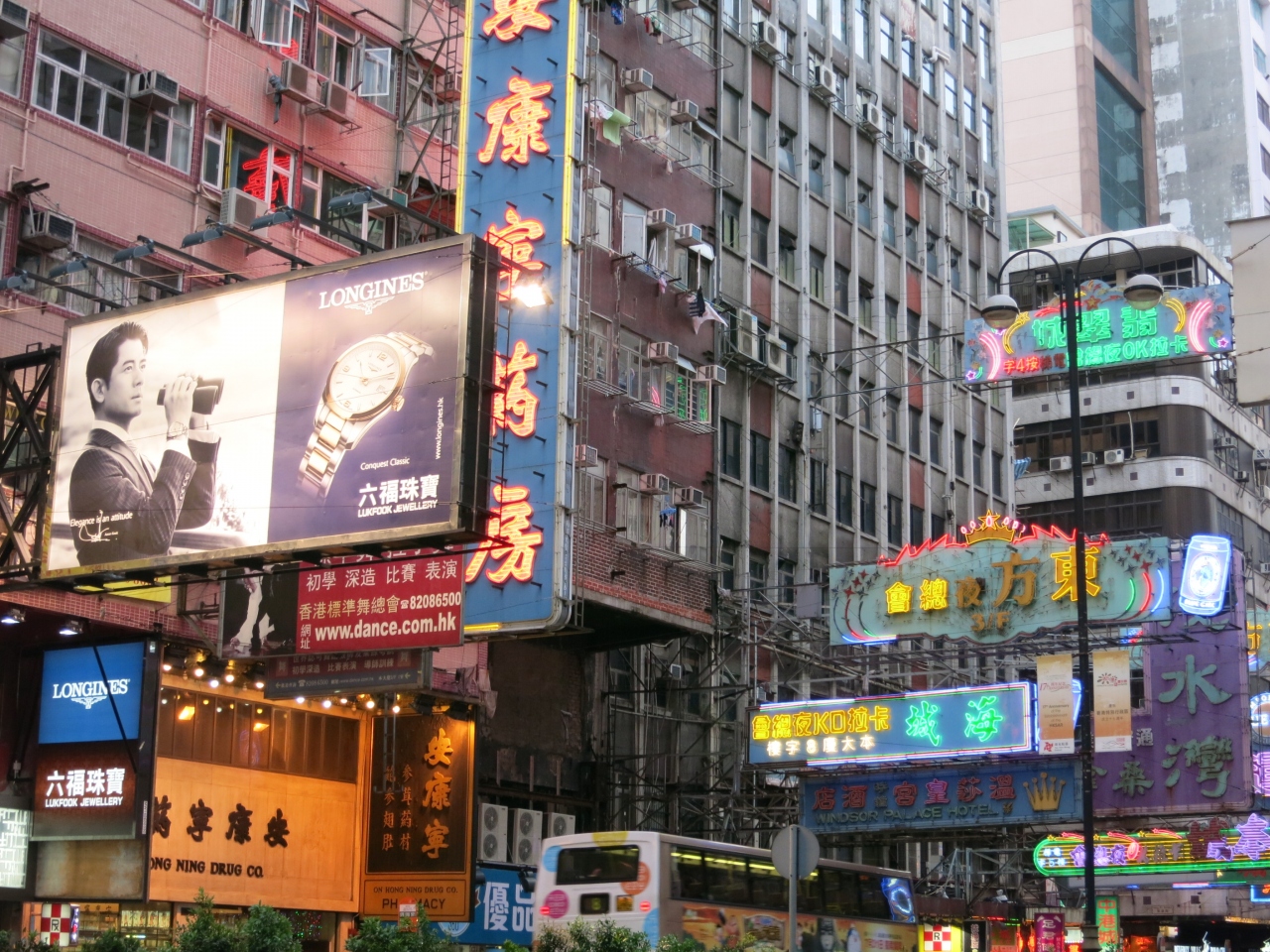 二階建てバスもドンドン走っていて、屋根ギリギリに設置してある看板を潜り抜けながら走る姿はいかにも香港という感じです。