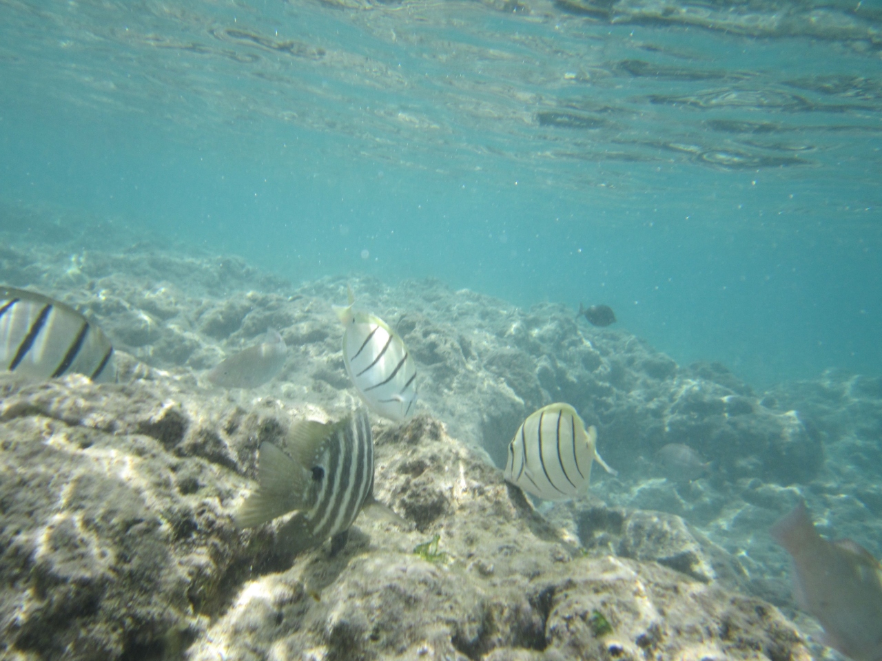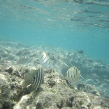 泳いでいてもお魚から私たちの方に近寄ってきてくれます。