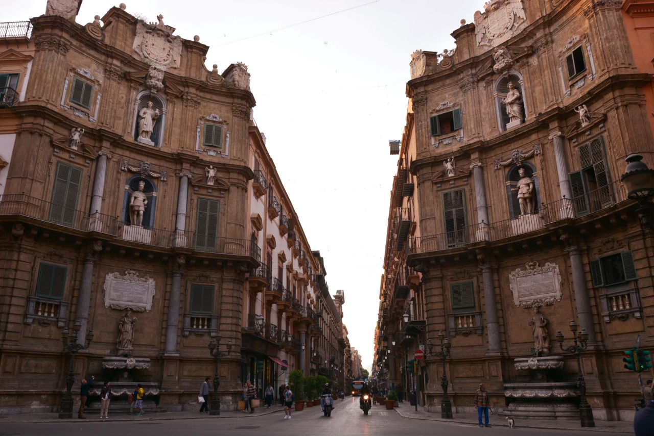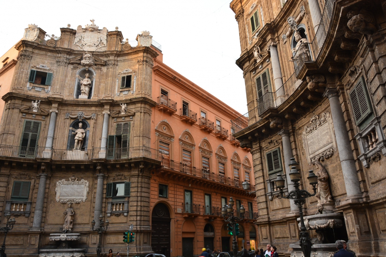 観光モニュメントとはいいきれないですが、パレルモの街歩きでは必ずや通るであろう4つ角です。