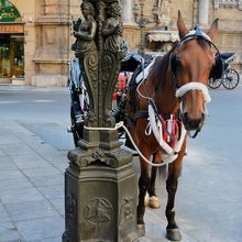 昼間はいつもここで馬車が待機しています。