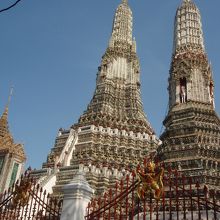 暁の寺とも呼ばれる。行くにはチャオプラヤ川をボートで渡る必要がある。8バーツだったと思われる。塔の上の方の斜面は急で恐ろしいくらい。ライトアップされるので向かい側のレストランからの夕暮れが綺麗でおすすめ。