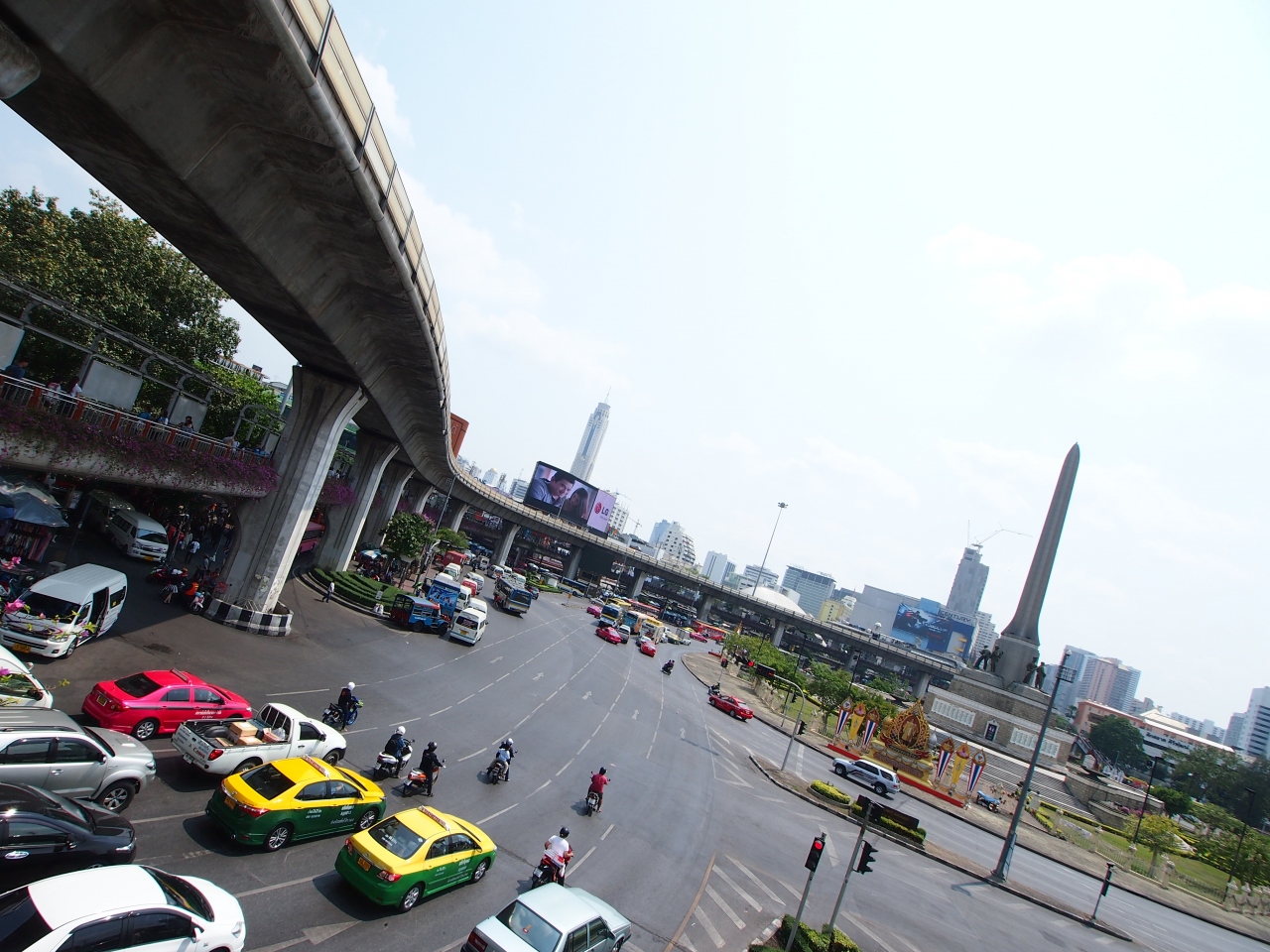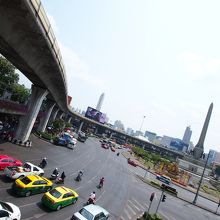 戦勝記念塔の付近からはバンコク近郊各地へのミニバスが集まっている。アユタヤや鉄道マーケットへのミニバスもここのあたりから出ている。空港への市バスもここを通る。この付近にホテルをとると移動がとてもらくだ。BTSの駅もある。