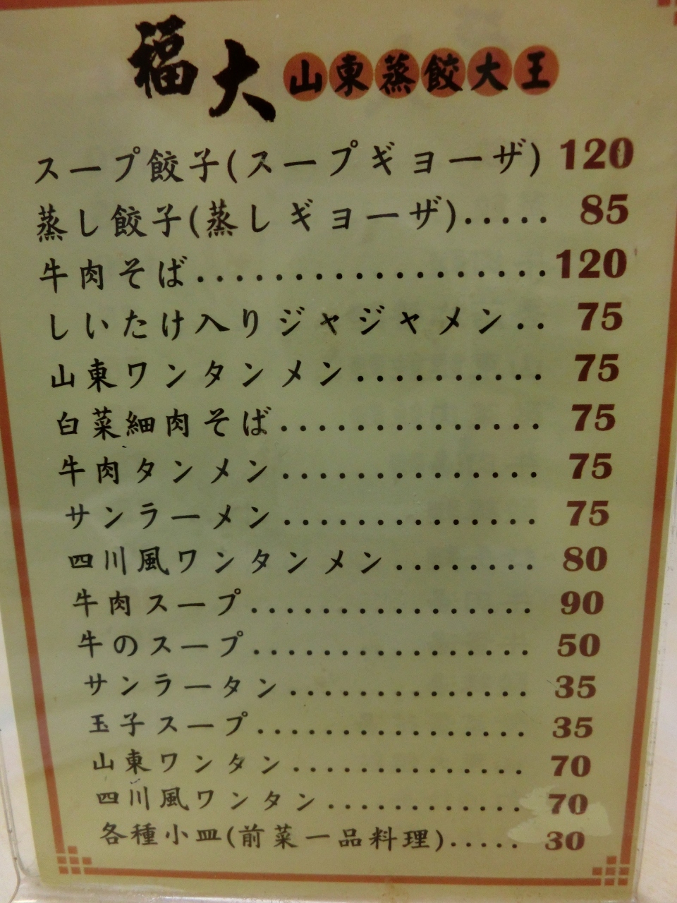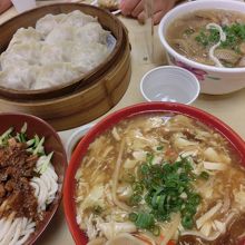 スープ餃子:(写真 赤い丼ぶり)餃子にサンラータンがかけてあり 個人的には?な味。