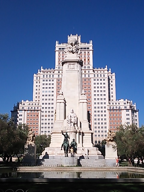 グランビア通りの先に、地元の人達がくつろぐスペインの大広場があります。
