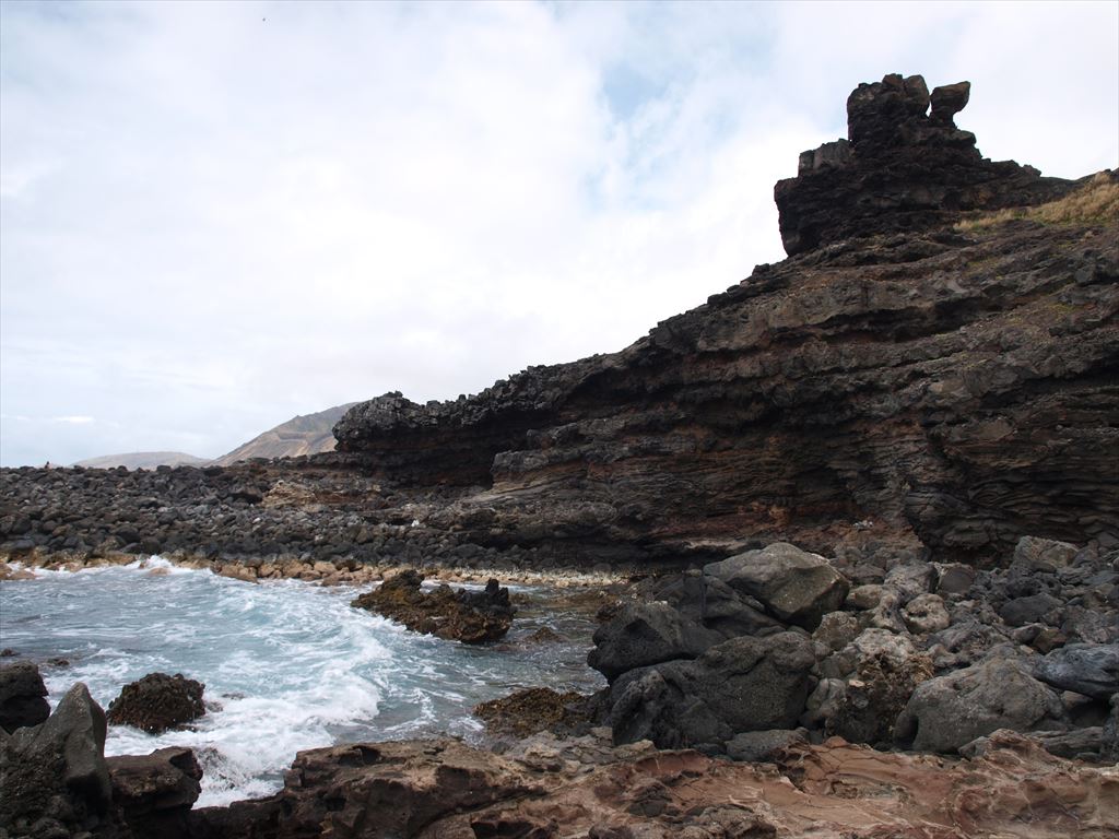 マカプーポイントへのトレッキングルートから右手に草原を15分ほど歩いた先にある溶岩の一枚岩です。