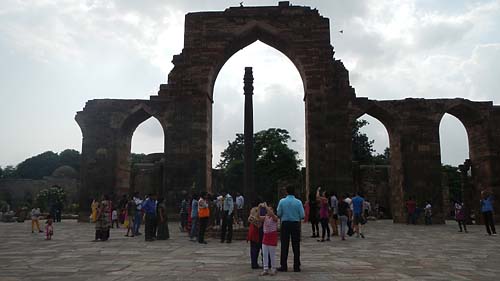 72mもの高さがあるクトゥブ ミナール。駐車場から既に高く聳え立つその姿が見えて期待に胸が膨らみます。ここも大都市デリーとあって国内の観光客、海外の観光客共に多いです。入場券を買い求める現地の人が多い中、ツアーのためすぐに入れました。入口でセキュリティチェックを行っていますが、それほどきつくなさそうです。
