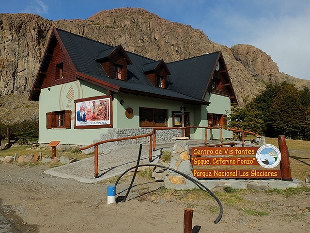 エル・チャルテンの町の手前、フィッツ・ロイ川のたもとに山小屋風のロス・グラシアレス国立公園の管理局があります。