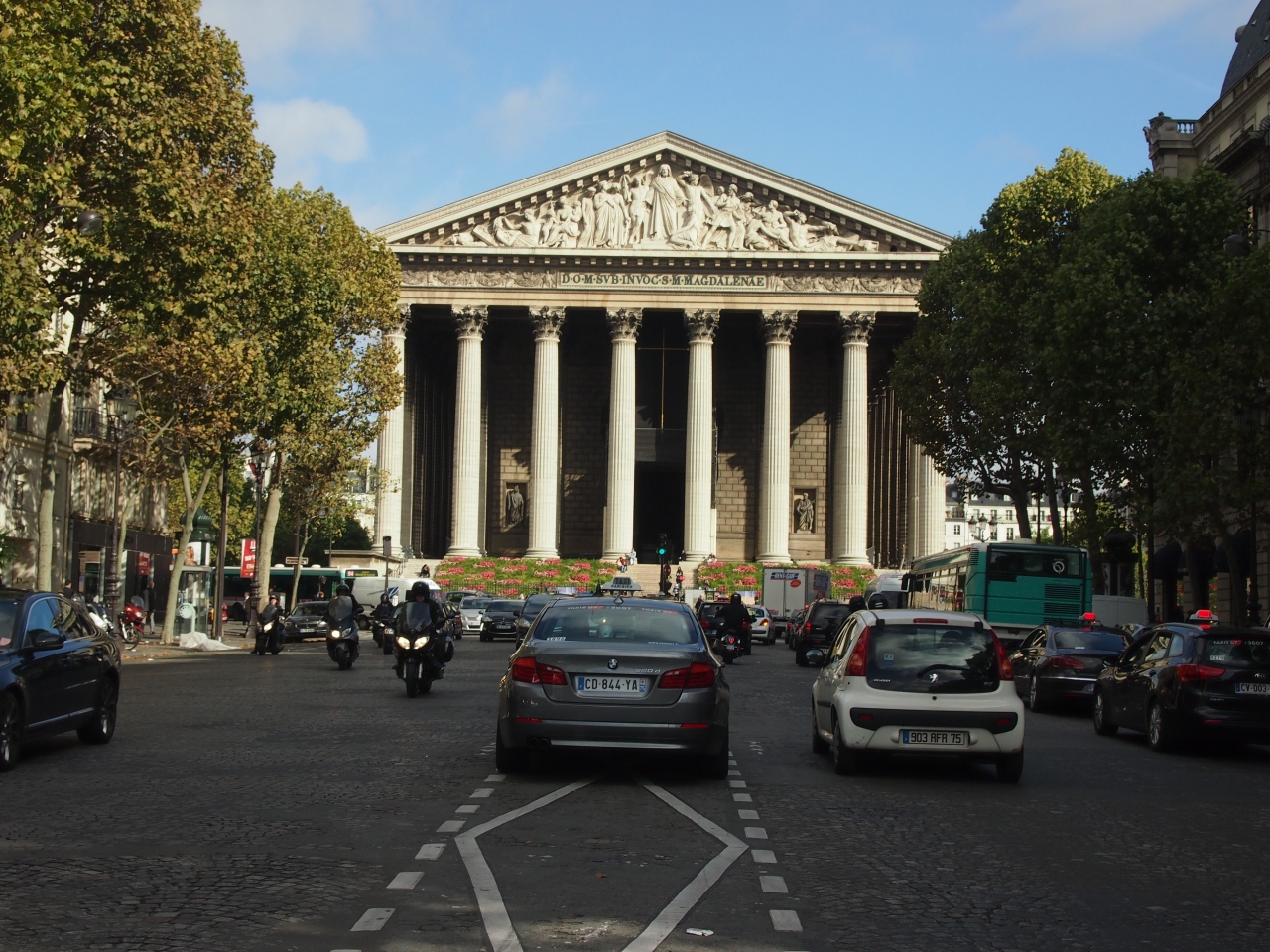 ギリシャ神話に出てきそうな寺院とは思えない外観のマドレーヌ寺院。