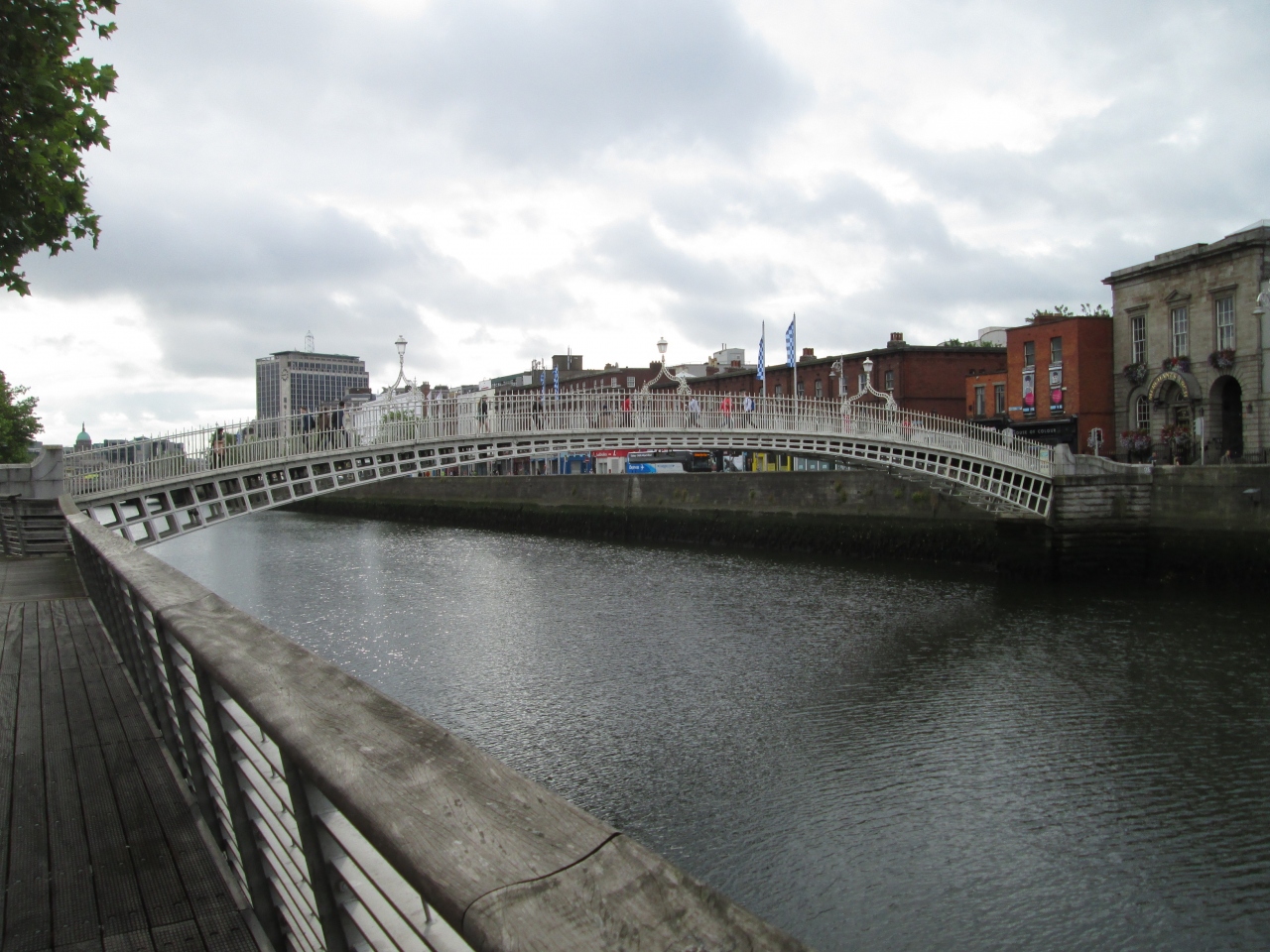 オコンネル橋の西側に架かる橋で歩行者専用で、車が通らないので橋の真ん中に物乞いがいました。昔橋を渡るのに半ペニーの通行料が必要だったのでこの名前が付いたそうですが当時の人達の恨みがこもっているような気がします。