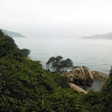 島の西側は岩場が多く洞窟もあり海岸線沿いに遊歩道が
