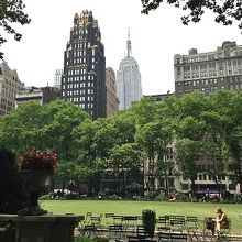 中央の芝生のまわりにはテーブルとイスがたくさん並べられていて、エンパイアステートビルディングも望めて、市民の憩いの場となっています。