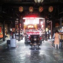ちょっと薄暗いなかに、お線香の煙りが立ち上ぼり、赤い豪華な装飾を施した台湾らしいお寺です。