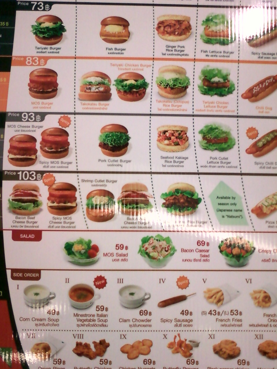 このモスバーガー (チッドロム店)は、日本でお馴染のファストフード店です。お値段は日本より少し安めですが、、日本と同じ味に満足できました。写真付メニューで指差しで注文できるので、言葉の心配なく利用できるので旅行者でも楽だと思います。サービス面では待ち時間が若干長いように感じました。