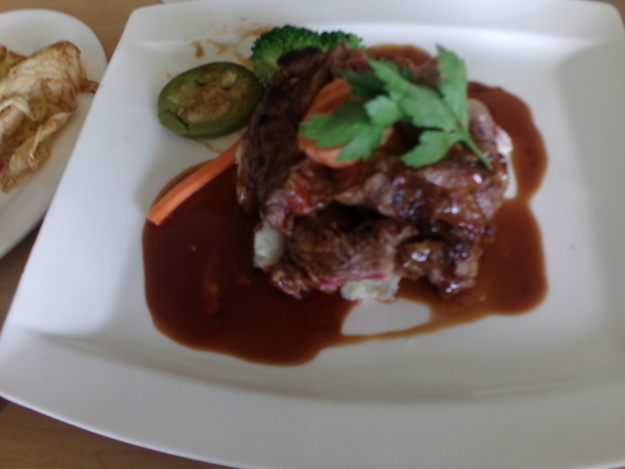 シーザーサラダは日本では見かけない斬新なスタイルなので、注文しようとしたら3チョイスBBQにサラダが付いてるので、ステーキをすすめられた。
