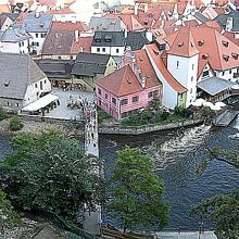世界で最も美しい街と言われるチェスキー・クルムロフの街です。確かに蛇行する川に挟まれた街は赤屋根で統一されており、素晴らしい景観です。