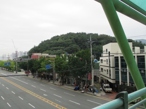 釜山鎮市場あたりからも見ることができるこんもりとした丘が、子城台公園です。