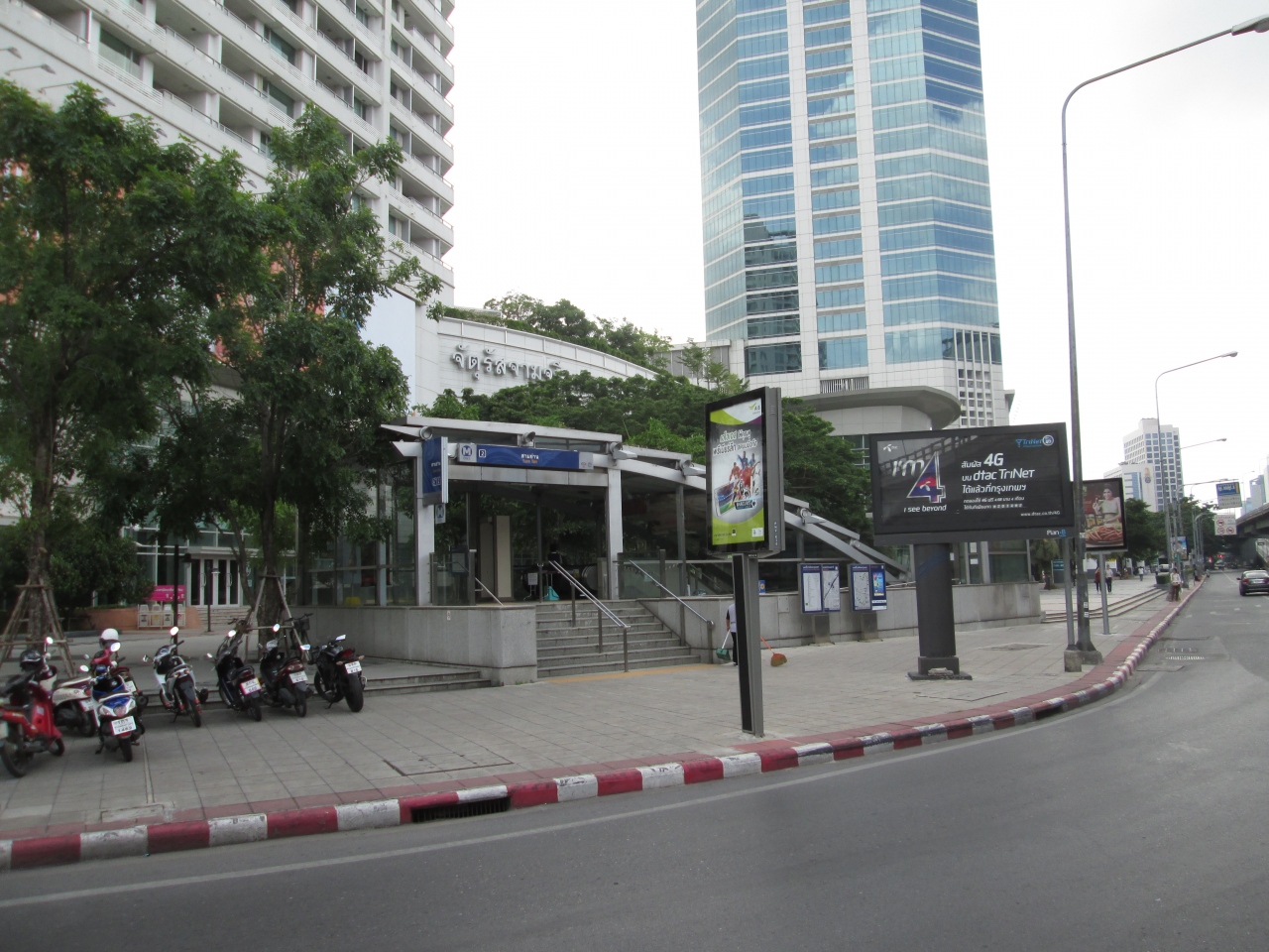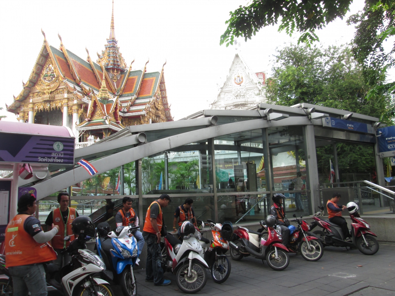1番出口を出るとすぐにワットフアランポーンの入口となります。御利益のある寺院で有名なことから平日の朝からたくさんお客さんが訪問していました。2番出口を出るとショッピングセンター「CHUMCHURI SQUARE」があります。