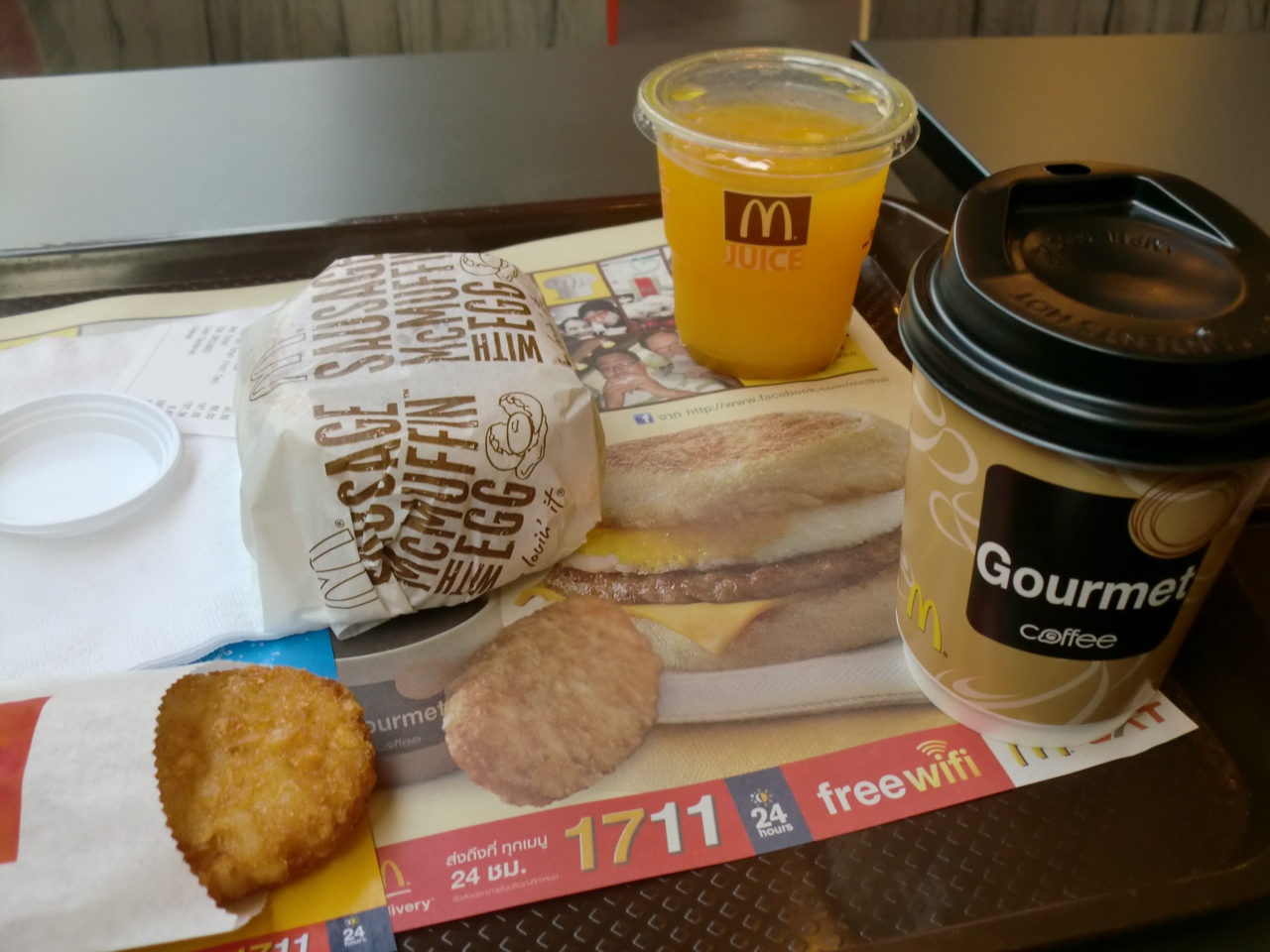 よく慣れた味なので安心して入れます。バンコクにはターミナルごとにあり、日本とほぼ同じメニューなので気楽です。現地の味に疲れた時や、朝食がわりに入ることが多いですが、コスト的には日本とそう変わりません。
