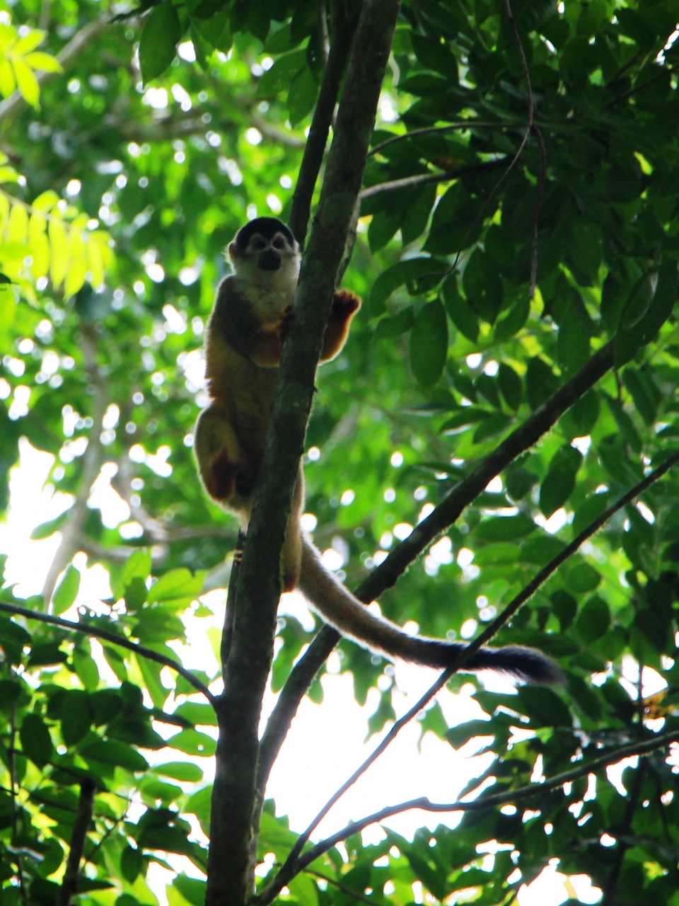 レンジャー・ステーションに滞在すると、朝は4時頃から始まる動物たちの鳴き交わす音で目覚めます。レンジャー・ステーションの前の大きな樹は、ホエザルの棲家となっていて、朝夕はホエザルたちが餌場に移動する姿も見られます。