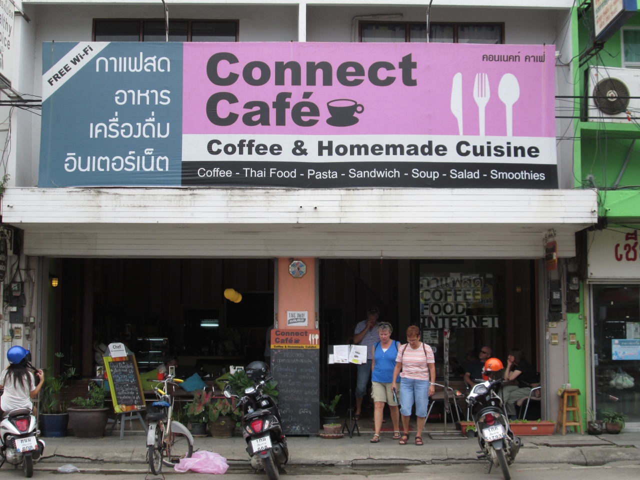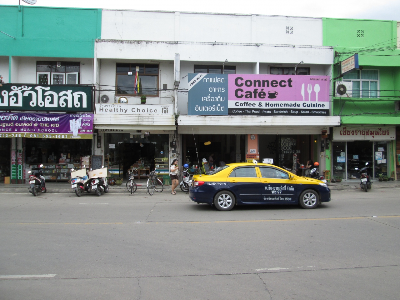 チェンライバスターミナル1の前にあります。食事時間帯以外も外国人のお客さんで座席が埋まっていました。カフェという名前ですが、軽食だけでなく、カオパット、パッタイなどのタイ料理を食べることができます。いずれも100バーツぐらいでリーズナブルな価格設定です。