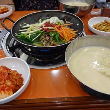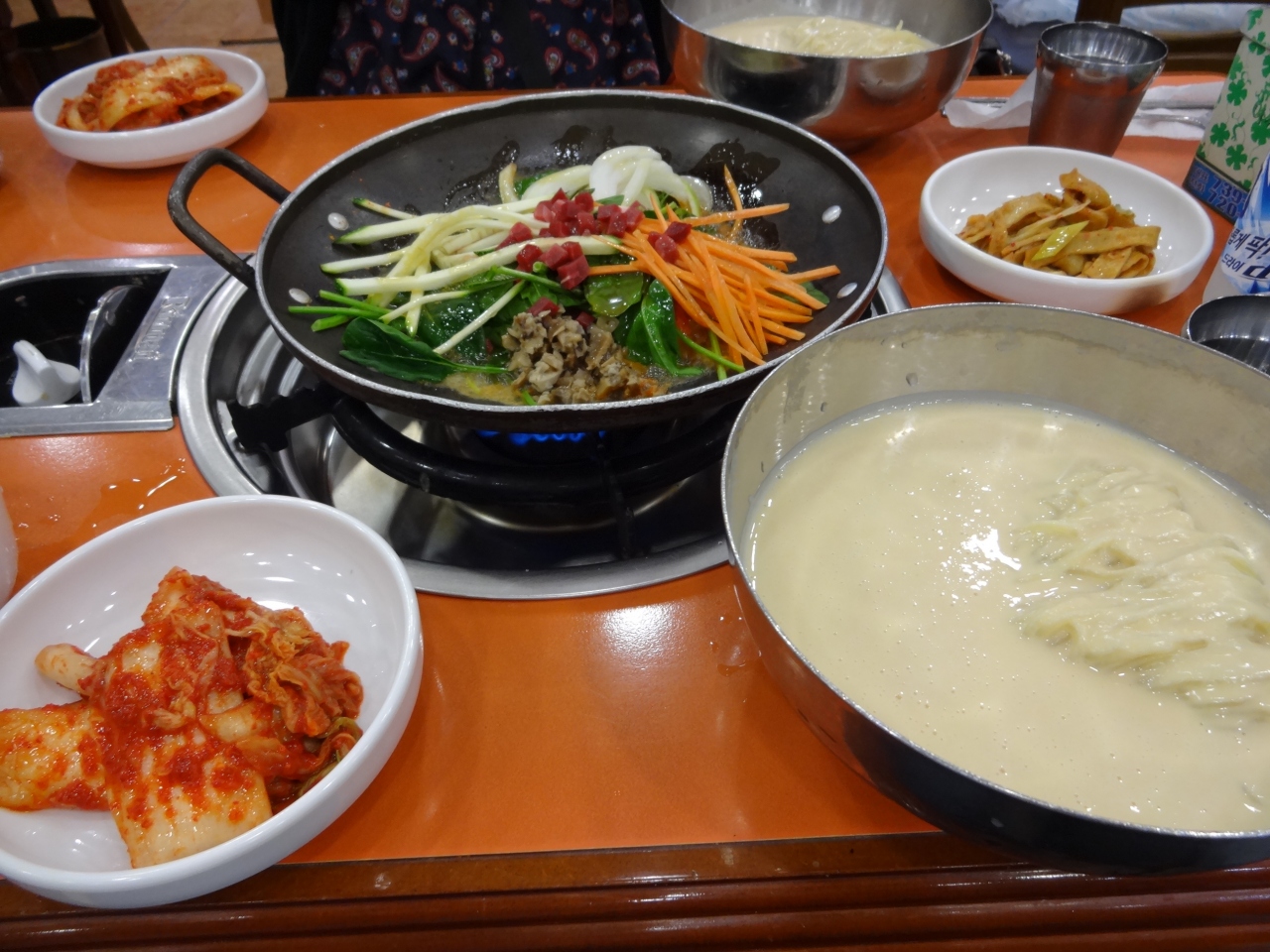 コングクスとポックンパを頼みました。日本語はあまり通じませんが、お店の人がとっても親切で、何も言わなかったのですがコングクス1人前を半分ずつに分けてくれました。