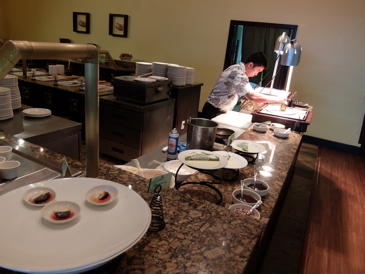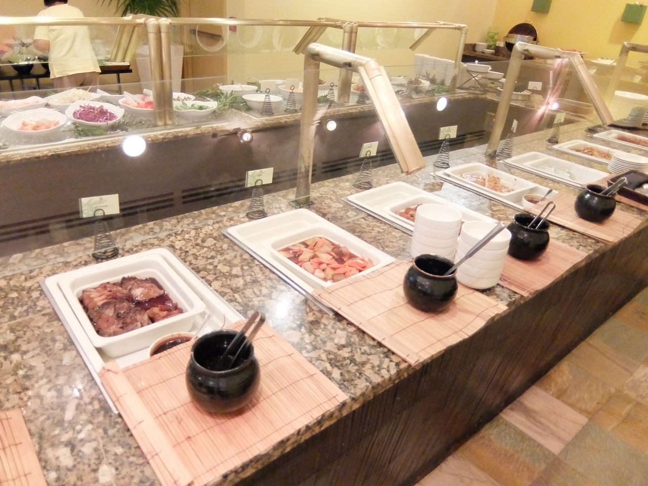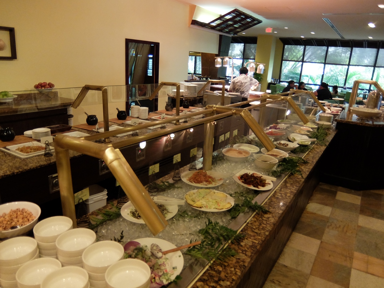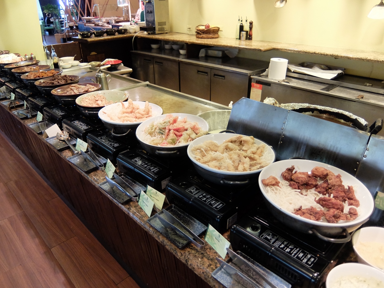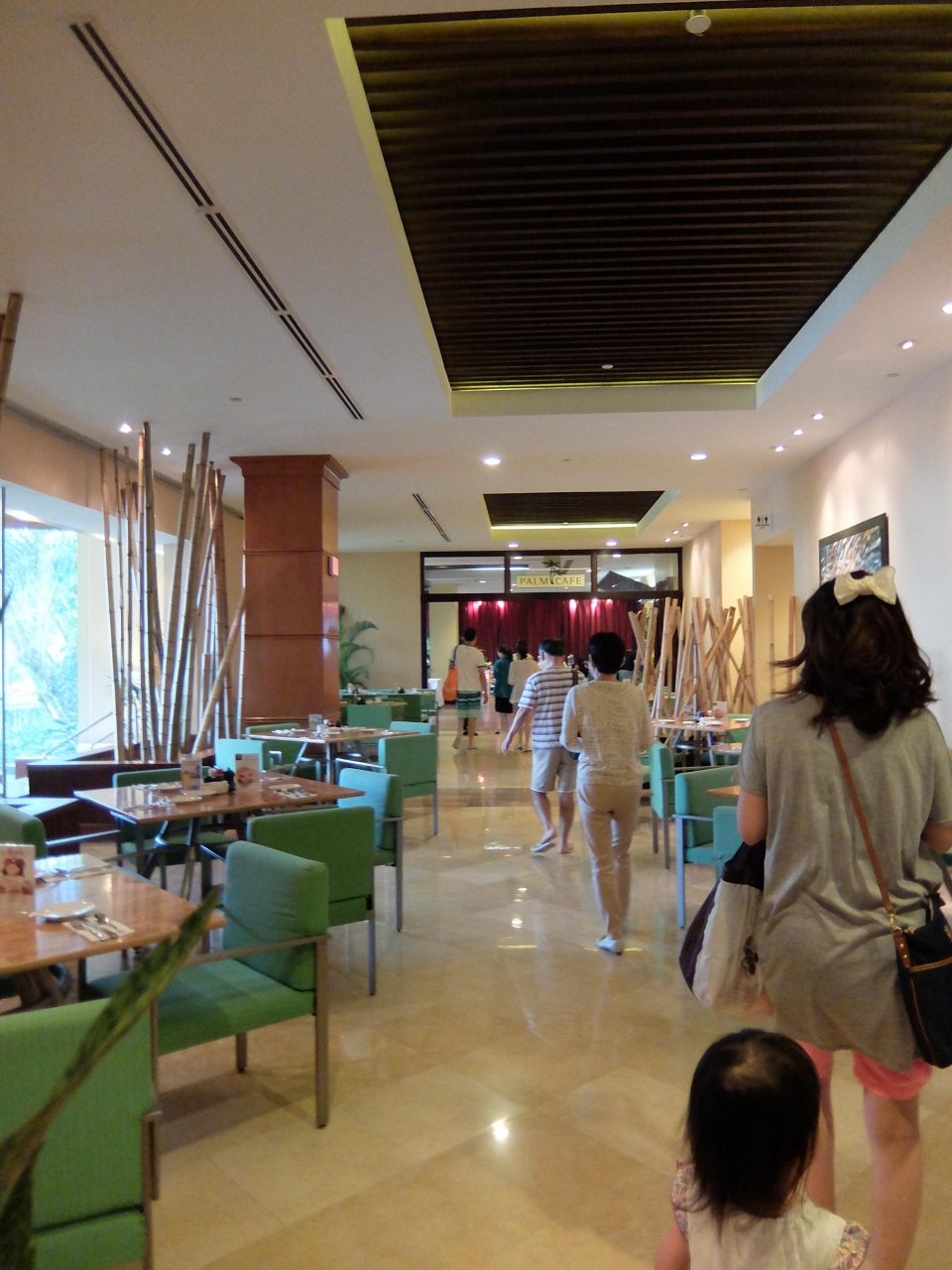 アウトリガーホテルのロビーフロア内にあるビュッフェ形式の朝食・昼食・夕食の利用ができるパームカフェです。宿泊者で朝食付きを選んだ場合、こちらのパームカフェでとることになります。