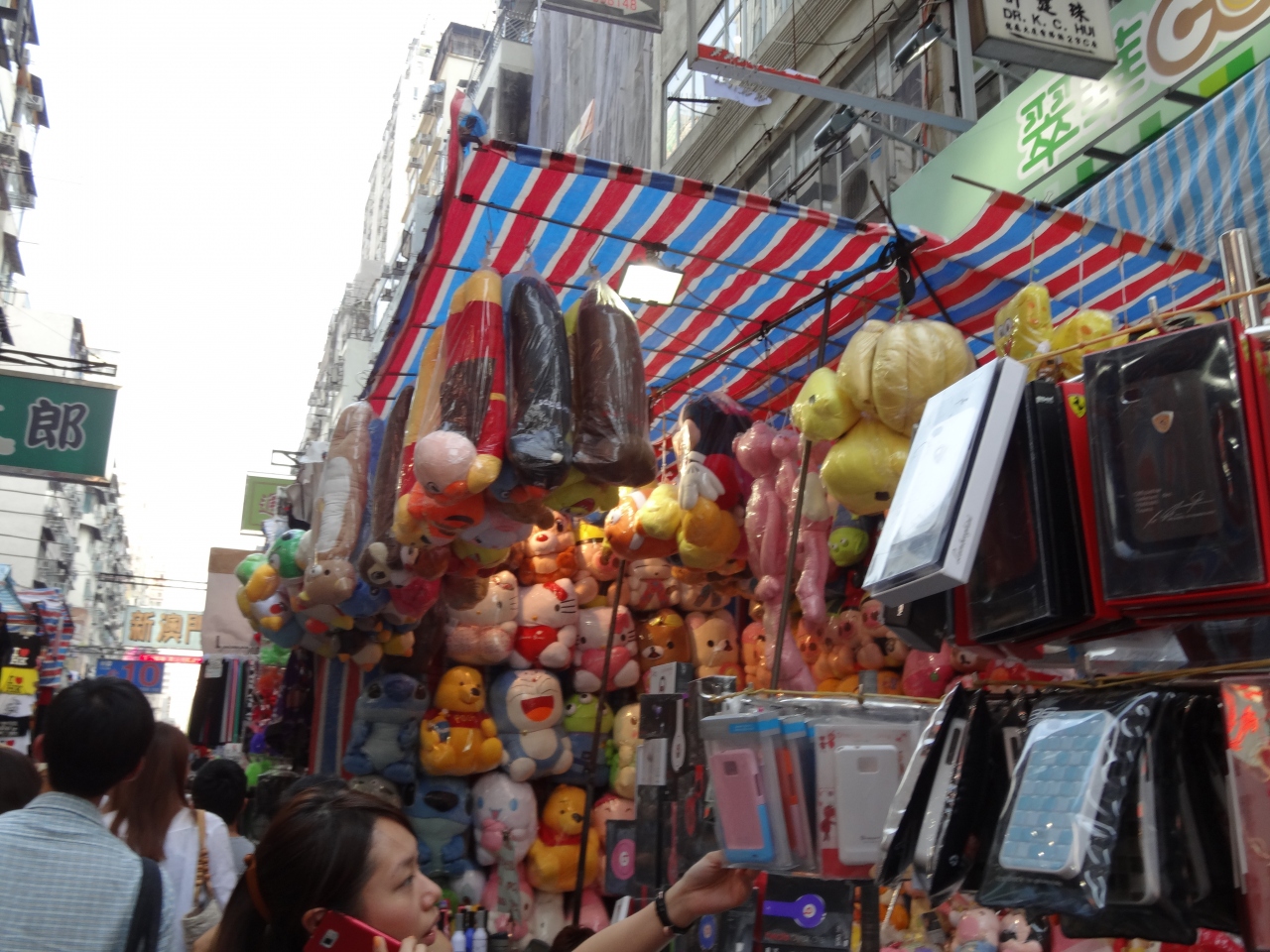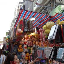 安い、偽物のキャラクターグッズ等がたくさん売られている市場という感じで、狭い通りにたくさんのお店と人でした。
