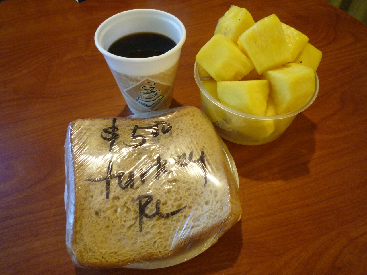 ターキーサンドは$5なので、お値段は高めかな?と思いますが、朝食にははずせません。