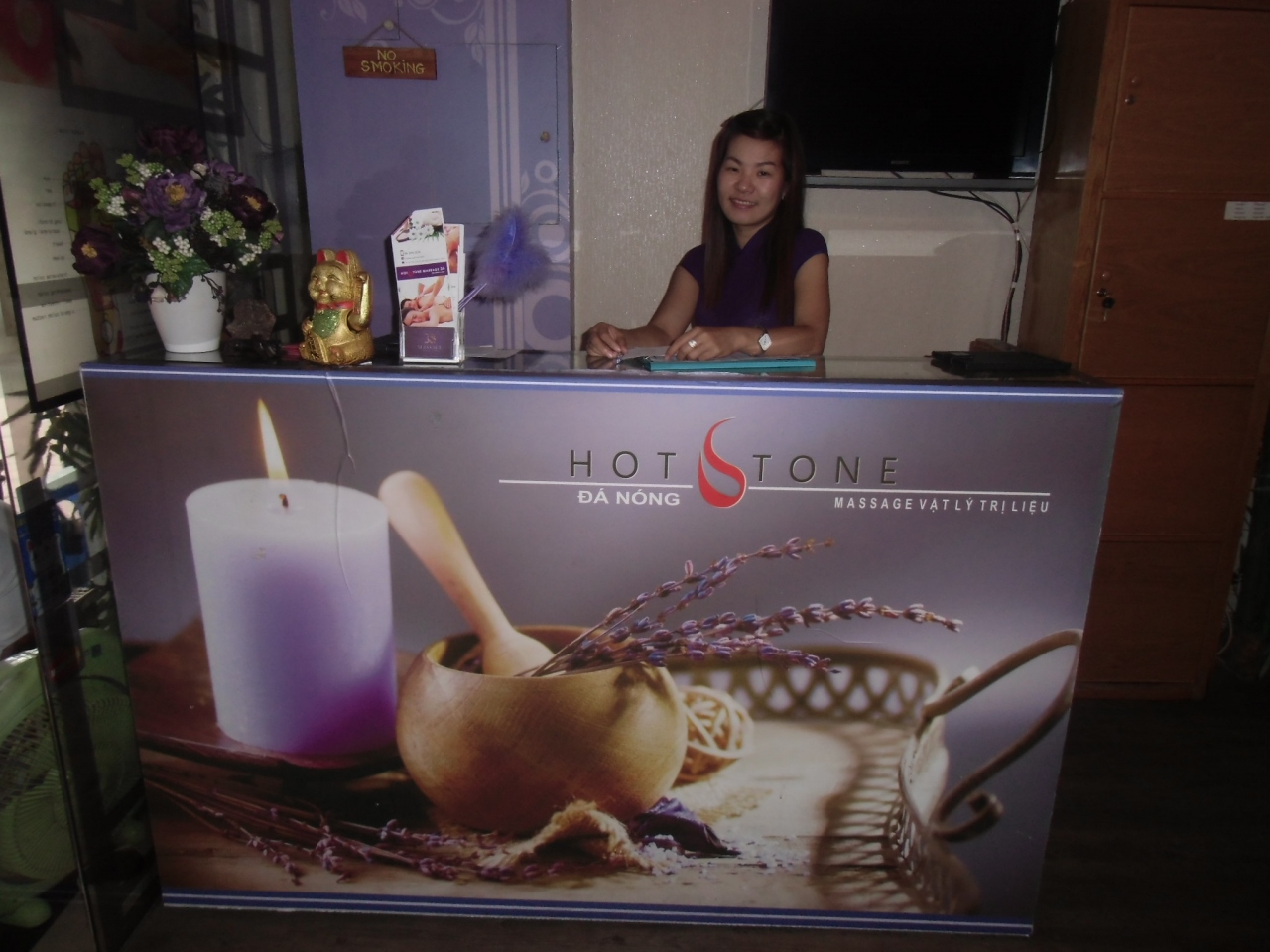 新しいお店なのでとても綺麗です。また鞄などは鍵付きロッカーに入れます。着替える服や短パンもとても綺麗でした。フットマッサージ60分チップ込20万ドン(約1000円)もソファベッドに寝転んで受けます。ボディマッサージは60分チップ込23万ドン(約1150円)、90分29万ドン(約1450円)で、ベッドに寝転んで受けます。キュウリの顔パックがついています。フットマッサージとボディマッサージのセットもあり、90分チップ込29万ドン(約1450円)、120分36万ドン(約1800円)と安いです。部屋は4~6名ずつに分かれていて、静かでとても雰囲気の良いお店です。カーテンで仕切られるようになっていました。名前の通り、いずれのコースにもホットストーンを使用します。最近スタンプカード(スタンプではなくサインです)ができ、9回行くと10回目が60分無料となります。