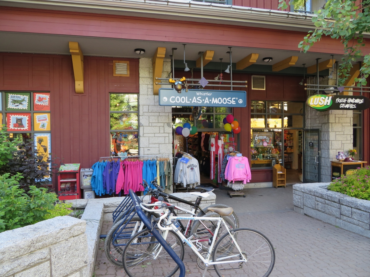 グラサン姿のポップな鹿のロゴがおしゃれな、洋服のお店「クール・アズ・ア・ムース」のウィスラー店です。