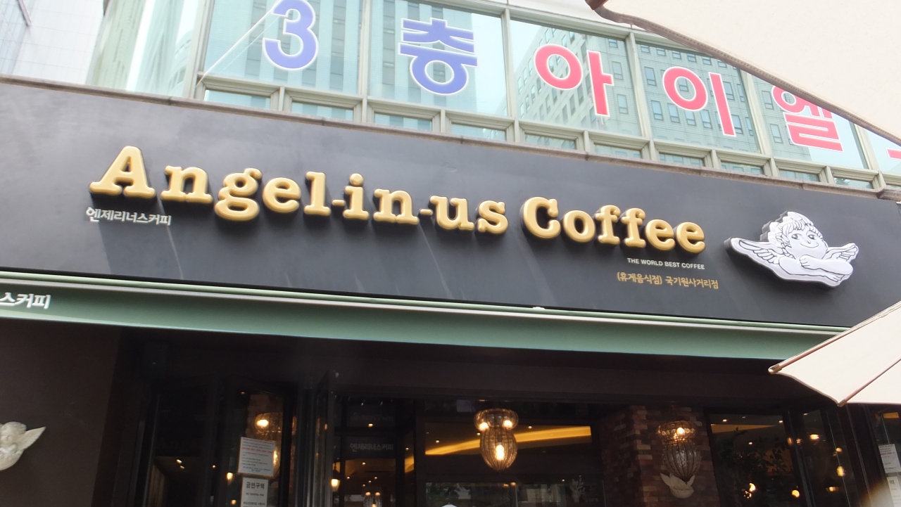 ダンキンの角を曲がって少し行った左側に、エンジェル イン アス コーヒー (国技院交差点店) があります。