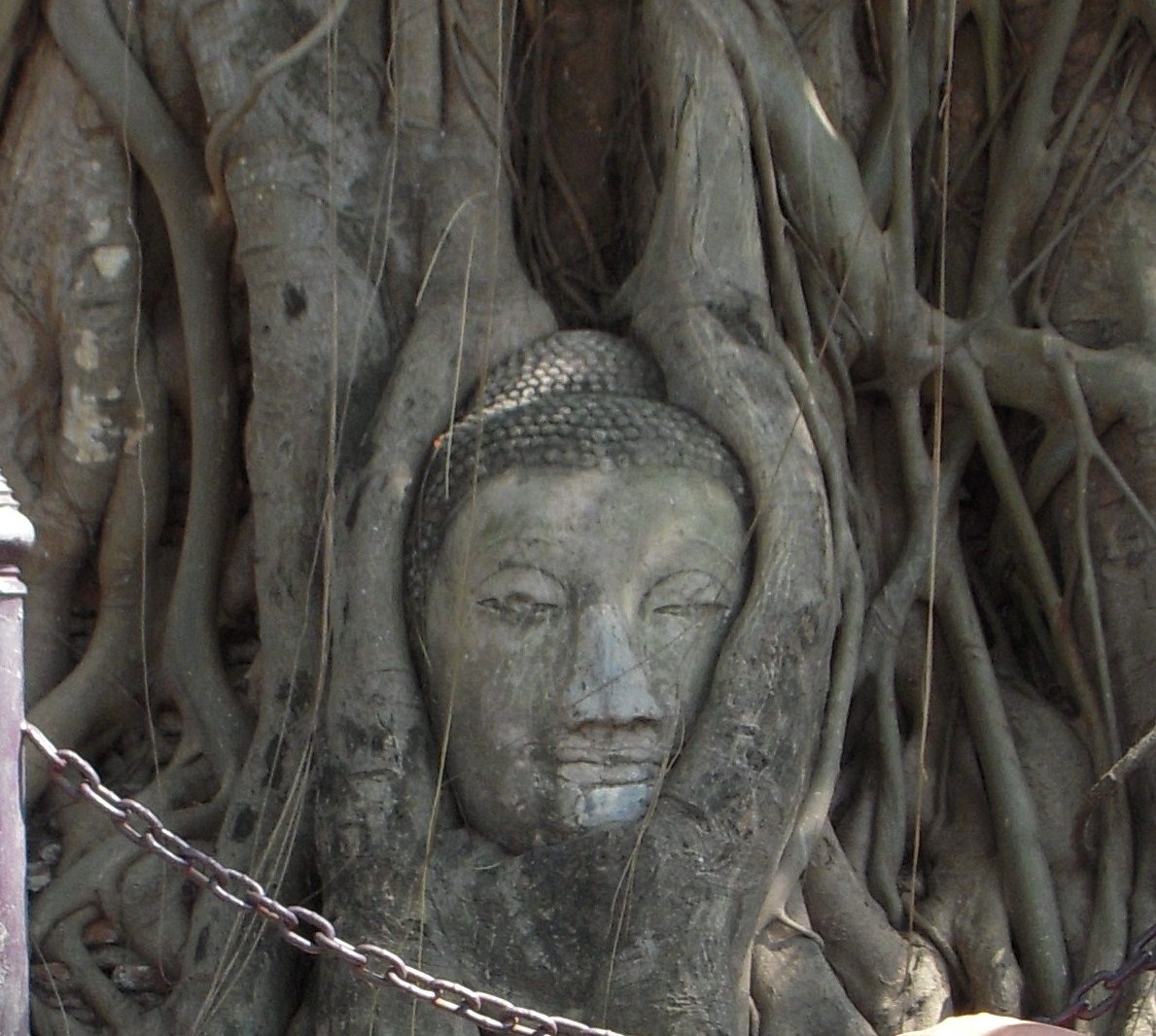 木の根に取り囲まれた仏頭は、今も地元の人々に信仰されているそうです。