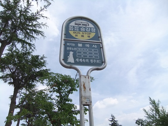 仏国寺から10番バスで雁鴨まで移動しました。高速バスターミナルの前からは10番と11番バスが逆ルートで循環して、仏国寺のあたりが折り返し地点のようです。両者の運行数は同じくらいのようですが、仏国寺前のバス停で10番バスを待っている間に11番バスが3本通過。道路の混み具合などによっても変わるかもしれません。