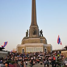 昔々、ビルマとの戦争に勝った事を記念して建てられたそうです。塔の台座の所には、その戦争で戦死した兵士の名前が彫られた銘板が填められています。周囲は大きなロータリーになっており、普段は、記念塔の敷地内には立ち入り出来ません。ロータリーの周囲は、バス停になっており、都バスの多くの路線が走っています。地方行きの乗り合いバンの乗り場もこの周囲に沢山あります。