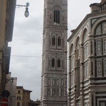 大理石の壁は白、赤、緑をタイル風に積まれています。