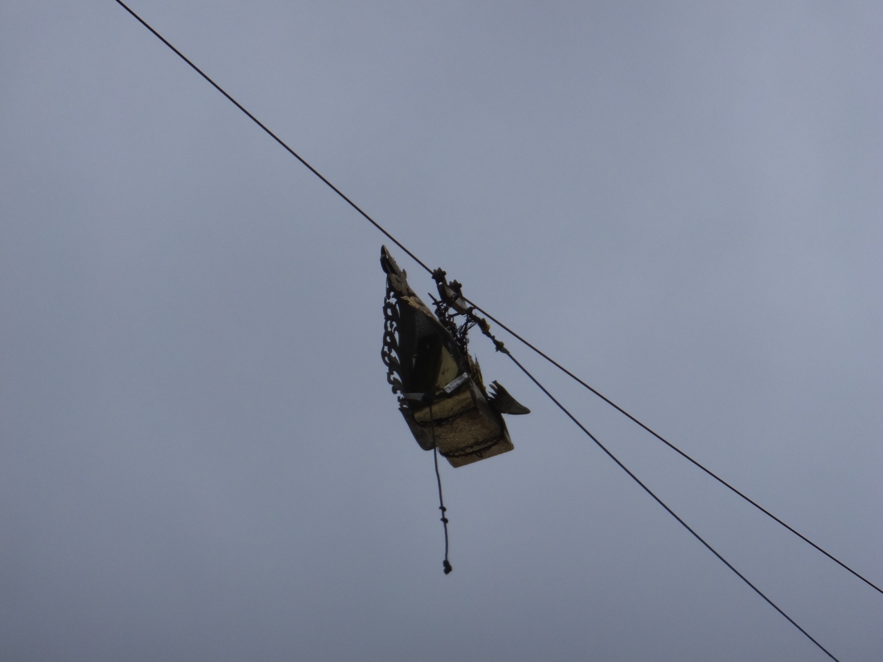 寺院の表でかご・箱みたいなのをロープーウェイのように